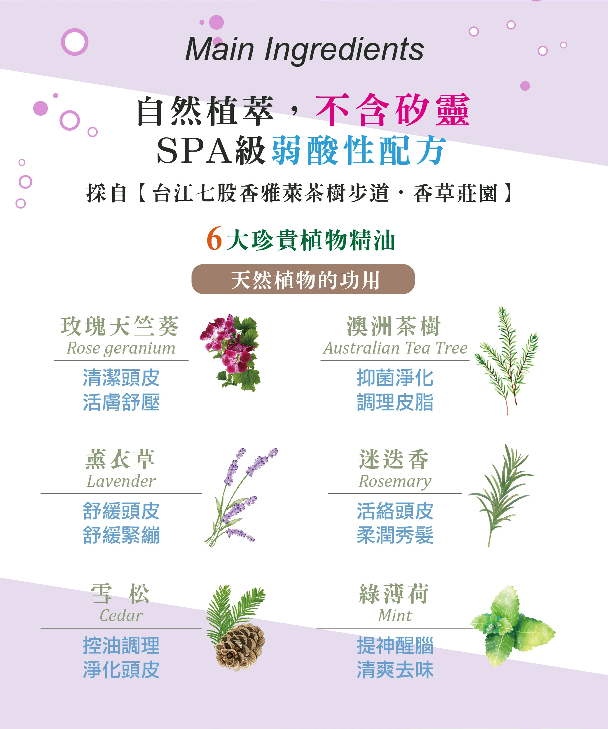 ✦六大珍貴植物精油-薰衣草、澳洲茶樹、迷迭香、綠薄荷、玫瑰天竺葵、雪松