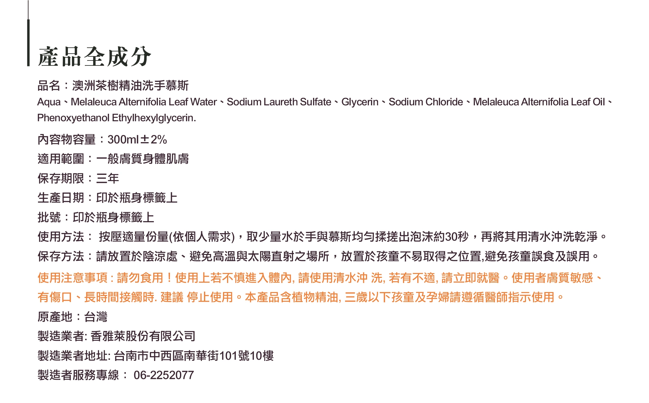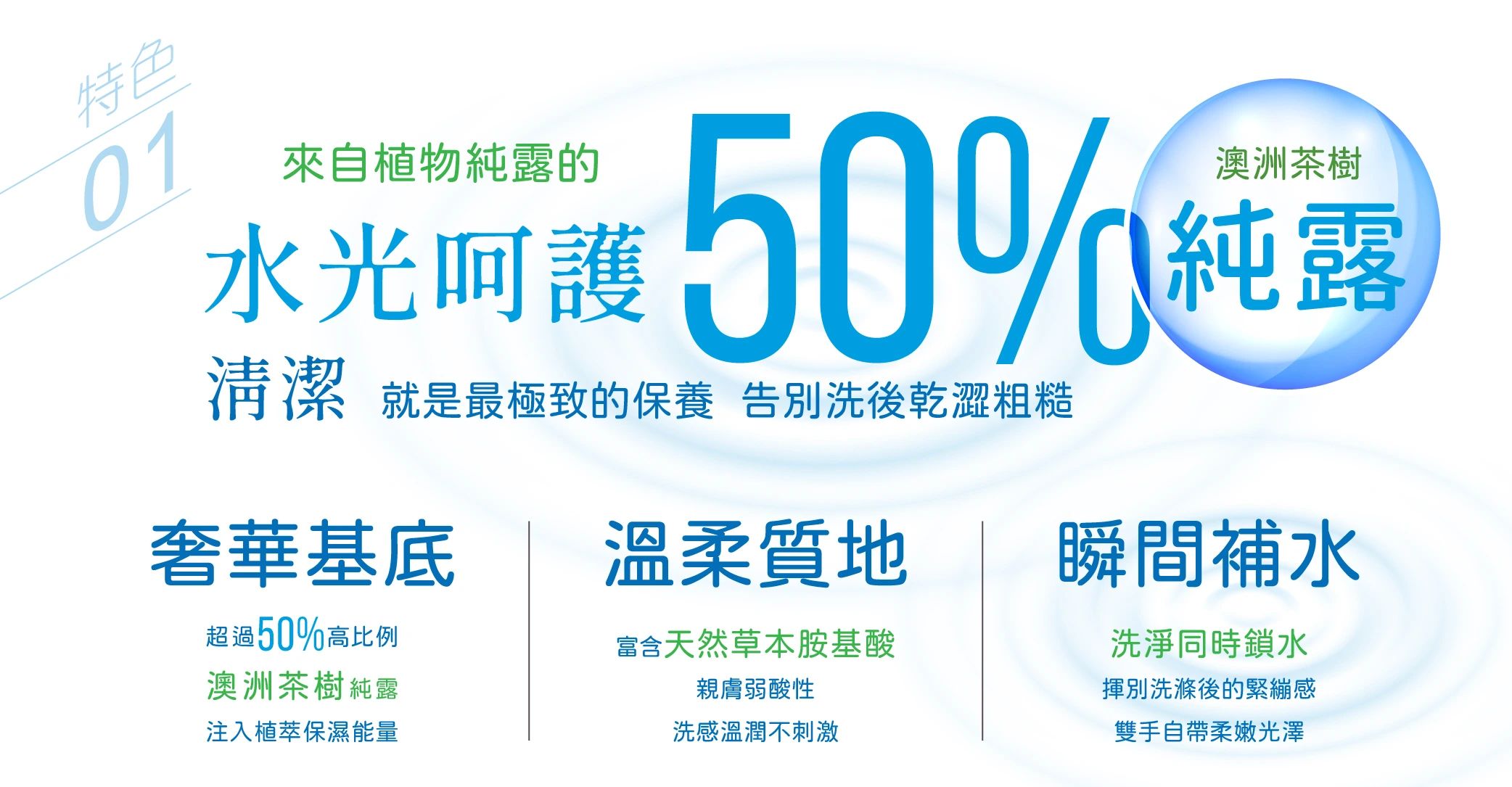 結合澳洲茶樹純露與精油,兼具保濕、滋潤與潔淨力。 |