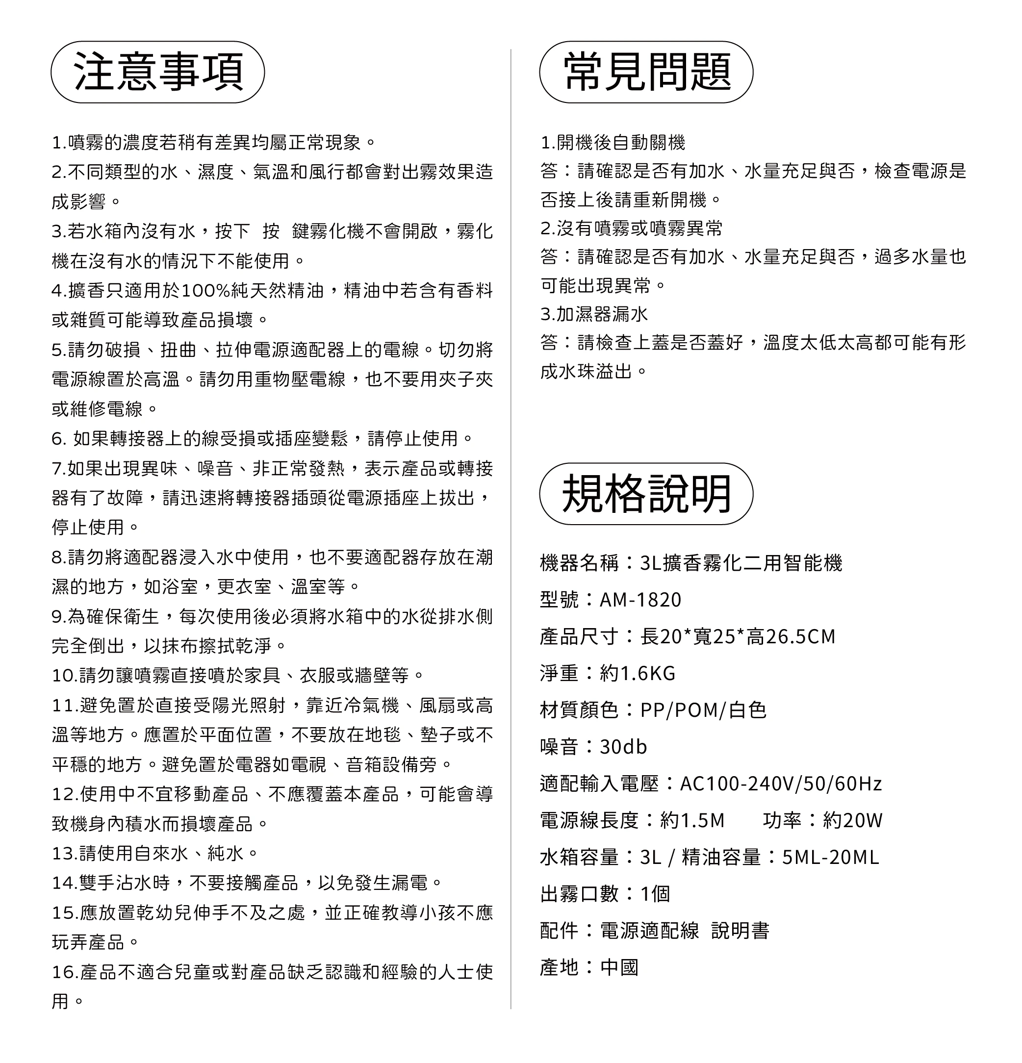 3L擴香+霧化二用智能機/擴香機使用擴香機專用純精油10ml/霧化機使用專用水溶性精油/水箱3000ml