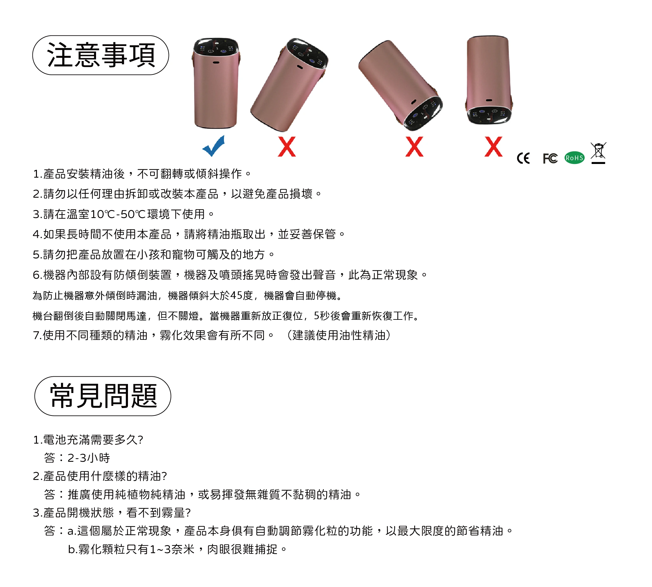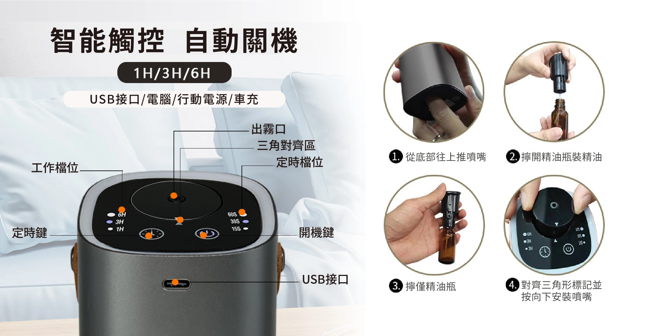 便攜式單噴頭擴香機 (使用擴香機專用純精油10ml/瓶)