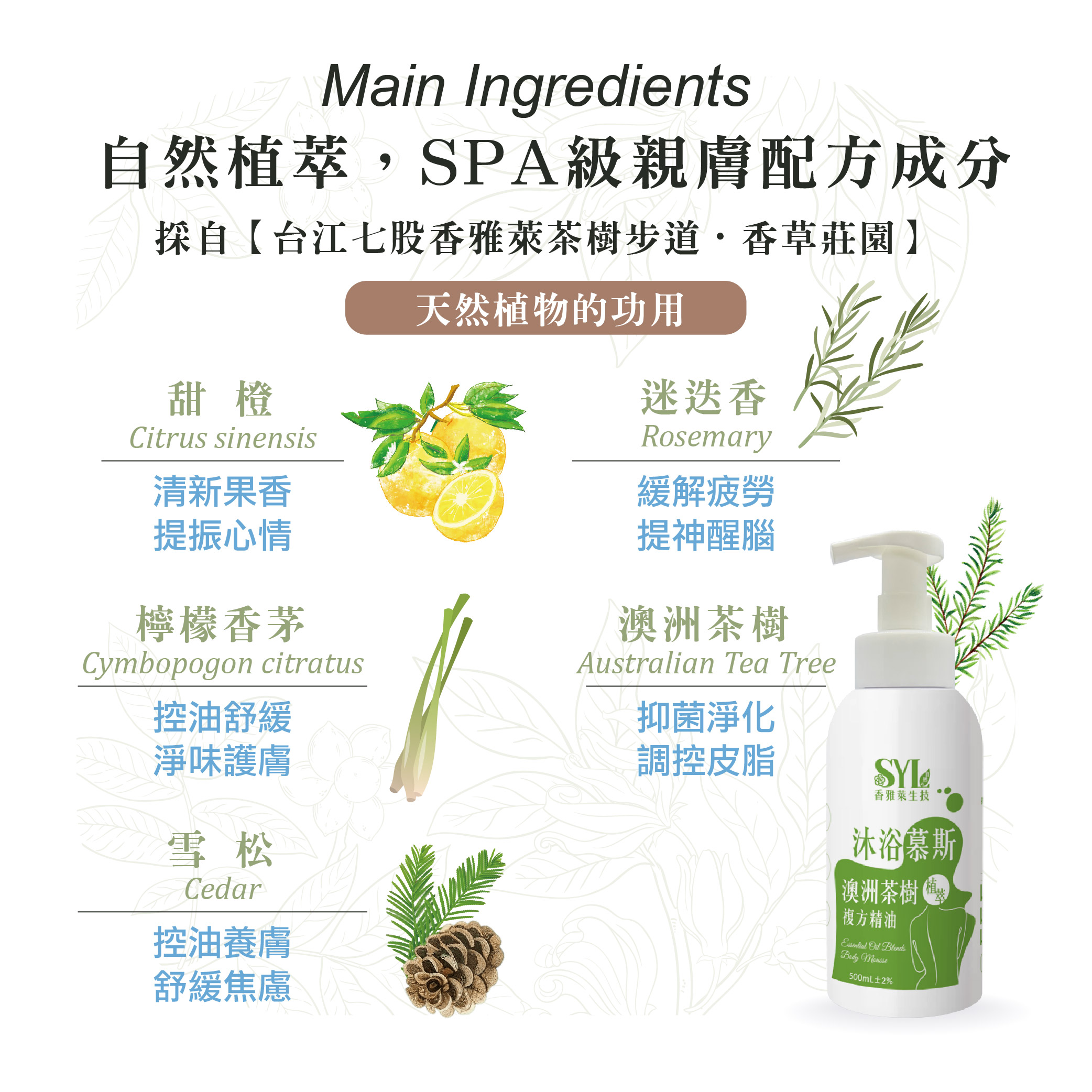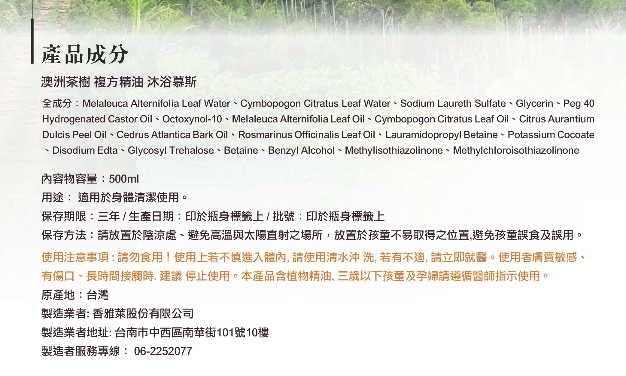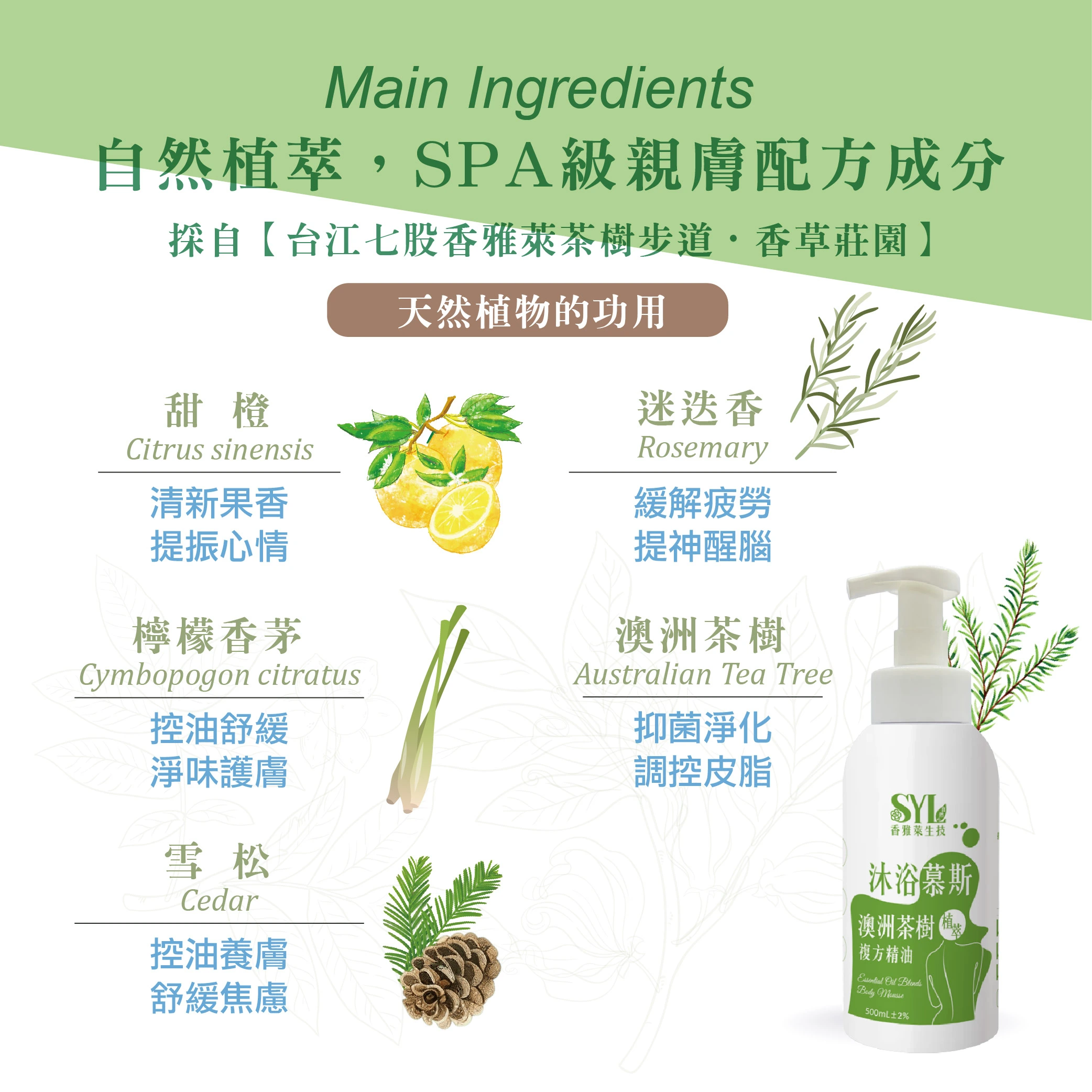 植萃精油-茶樹沐浴慕斯/500ml