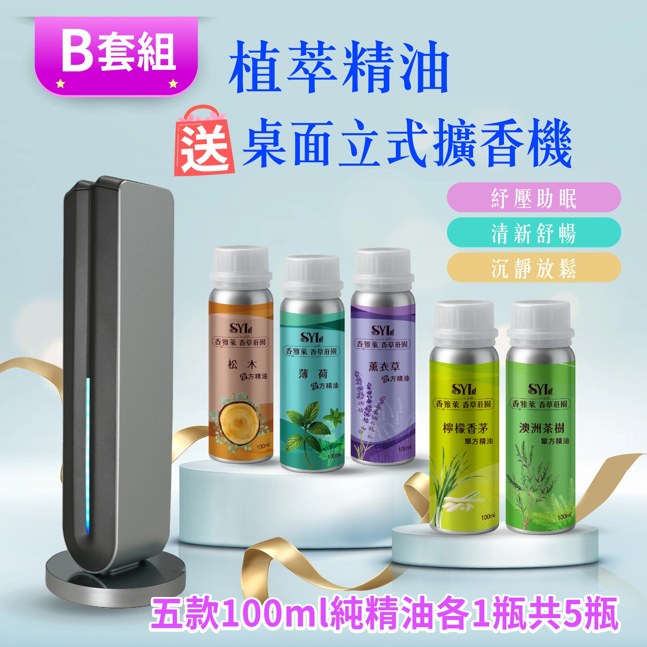 B套組-100ml純精油各1瓶共5瓶/贈品:桌面立式擴香機+