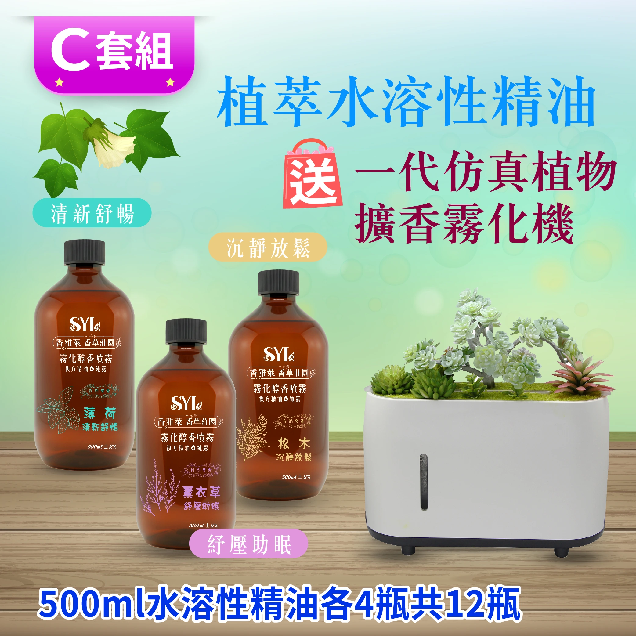 C套組-500ml水溶性精油各4瓶共12瓶/贈品:一代霧化機