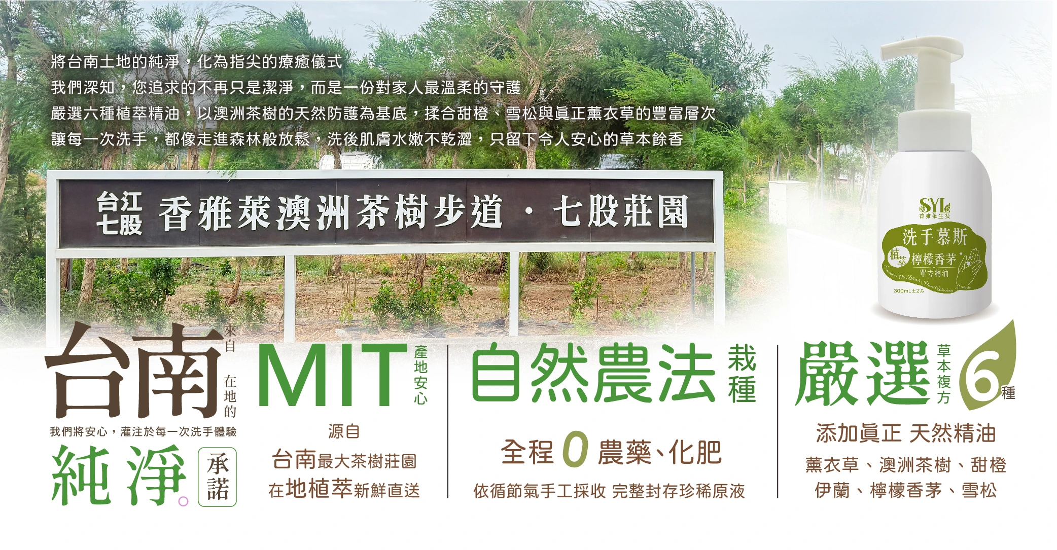 嚴選在地種植檸檬香茅,台南七股潟湖純淨萃取。 |
