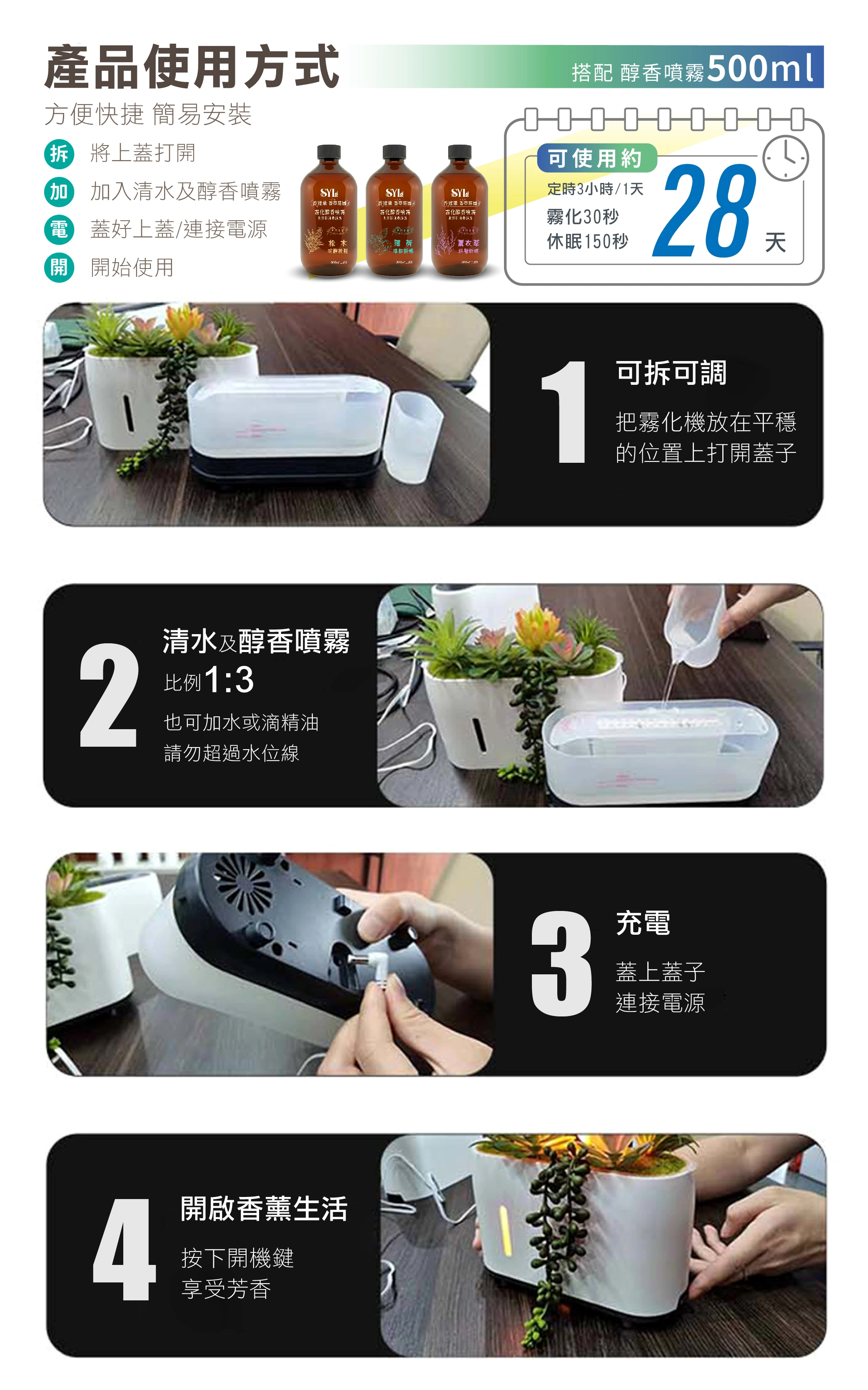 二段式燈光/使用霧化機專用水溶性精油/水槽240ml