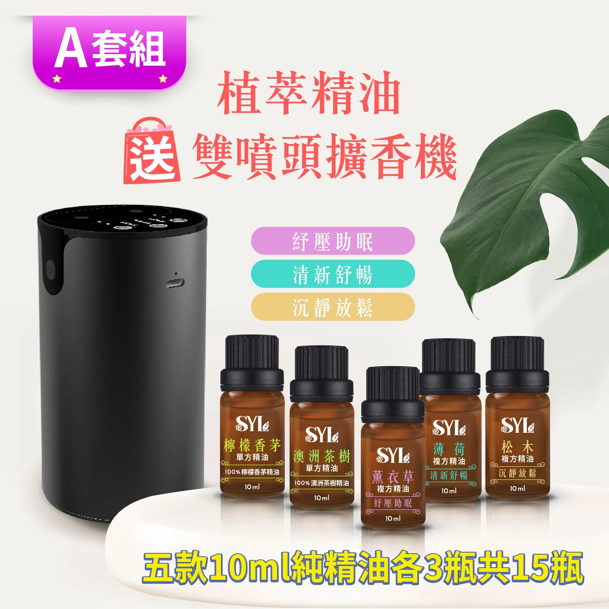 A套組-10ml純精油各3瓶共15瓶/贈品:雙噴頭擴香機+轉